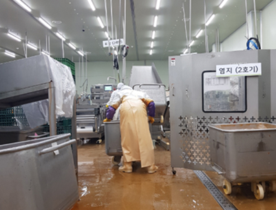 냉동실 해동 ( 저주파해동기 유수해동기 ) 해포기 ( 비닐제거 )